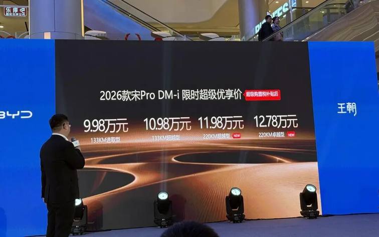 其中,2026款秦L DM-i 210KM长续航版限时超级优享价11.28-12.28万元;2026款秦PLUS DM-i 210KM长续航版售价8.98-9.98万元;2026款宋Pro DM-i 220KM长续航版限时超级优享价11.98-12.78万元。同时,三款新加推的车型也均给出了极具诚意的优惠政策。