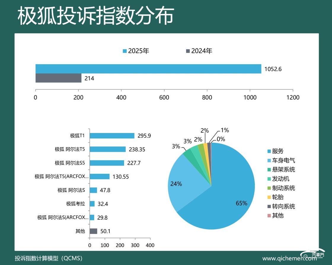 汽车质量投诉点评:过去的一年,极狐投诉指数达到了1052.6,同比上涨了392%,底盘护板减配成为重点投诉问题。据车主反映,2025款极狐T1底盘的高压线束未配备护板,线束直接裸露在外,存在严重安全隐患。另有车主表示,目前厂家针对该问题采取区别对待的处理方式,仅为小部分车主免费加装护板。与此同时,新车降价也遭到了部分车主的投诉,涉及2025款极狐阿尔法T5、极狐阿尔法S5等车型。