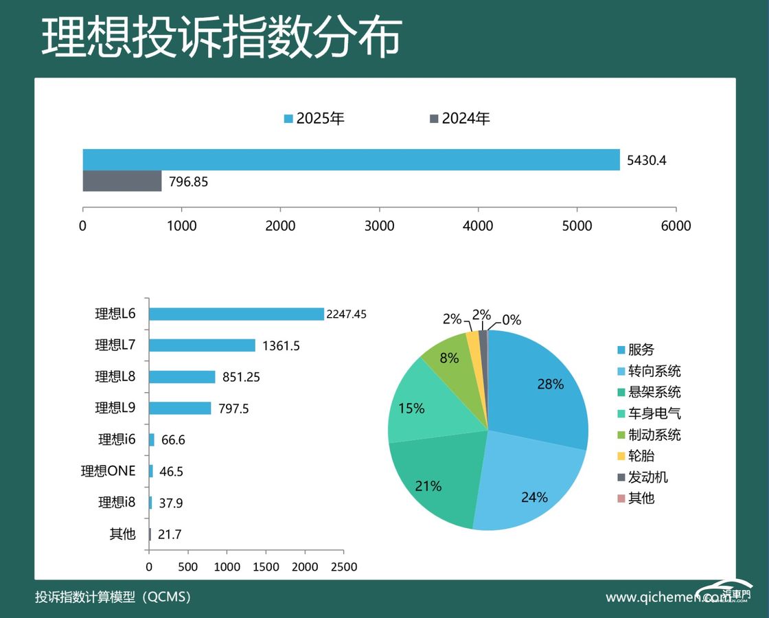 汽车质量投诉点评:去年,理想投诉指数高达5430.4,同比涨超5倍。这背后,下摆臂异响和新车降价遭到了车主们的集中投诉。2025年7月,理想L系列焕新版出现大规模异响问题,多位车主反映提车后不久就会出现左下支臂、右下支臂异响,行驶约2700公里时转向异响明显。面对车主们的投诉,官方解释了异响原因并提供了补偿。此次风波平息后,理想因对理想L系列调整销售政策被老车主认为是变相降价从而遭到投诉。