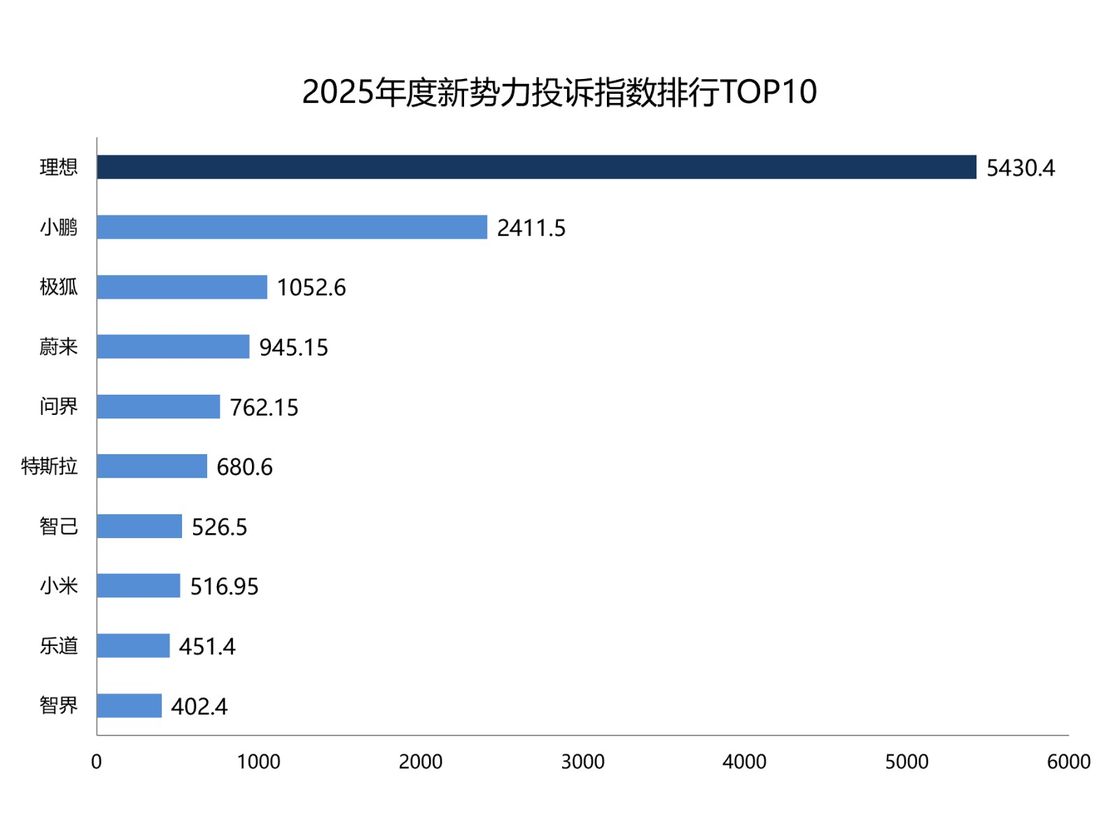 2025年度新势力投诉指数排行:车市竞争卷出新问题