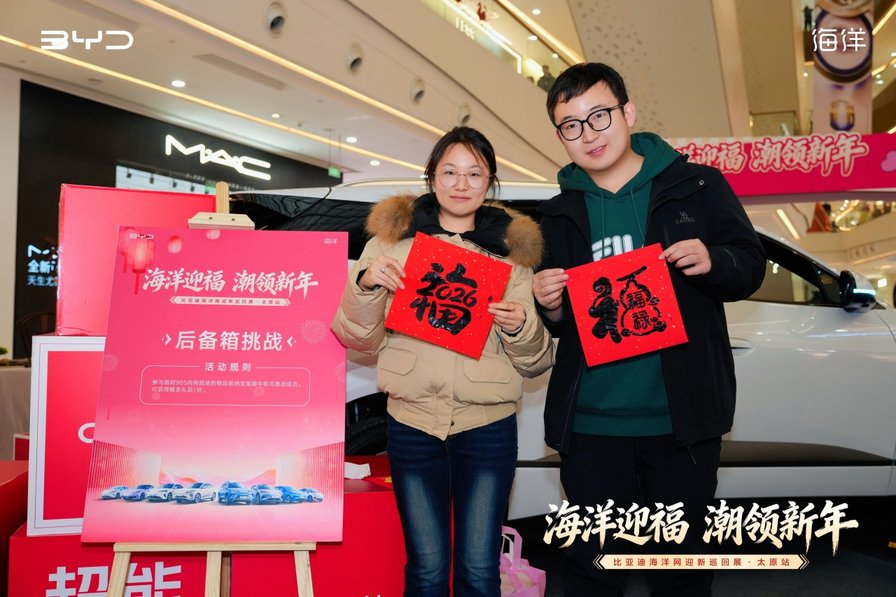 恰逢周末黄金时段,活动现场人流如织,年味十足,比亚迪海洋网陕甘宁战区山西大区运营经理庄帅、山西一区经理叶彩旭亲临现场,为山西消费者带来两款重磅新车的全方位解读。