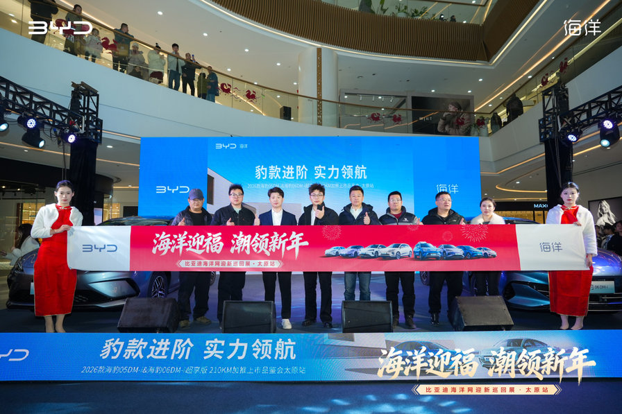 1 月 17 日至 18 日,“海洋迎福 潮领新年” 比亚迪海洋网迎新巡回展 太原站暨“豹款进阶 实力领航” 2026 款海豹05DM-i & 海豹06DM-i 超享版 210KM 加推上市品鉴会在太原茂业新天地热力启幕。