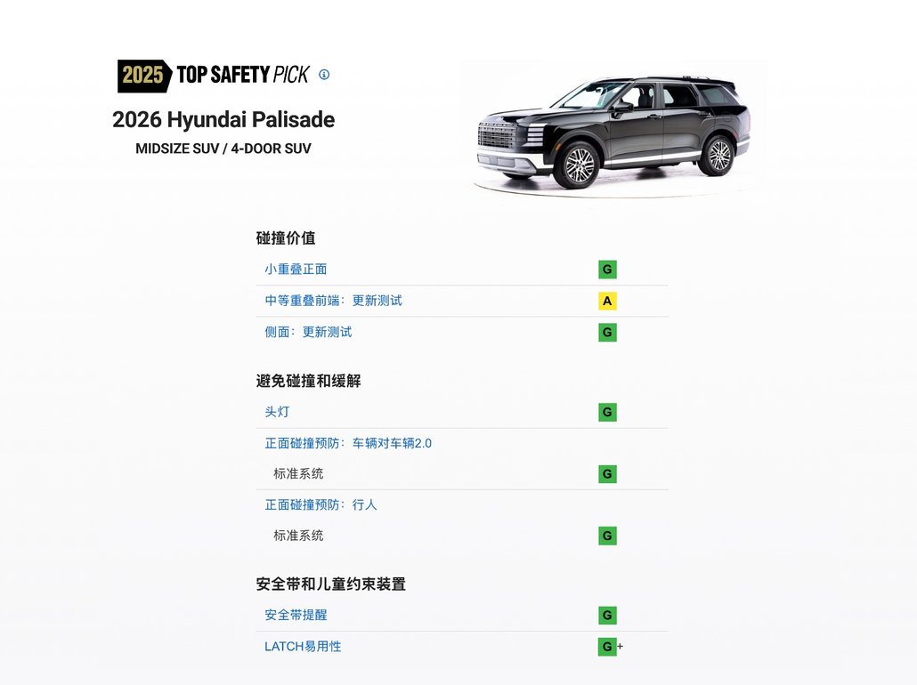 - 除荣膺“2026北美年度多功能车™”大奖外,新一代帕里斯帝自上市以来还收获了多家权威机构的认可。其先后夺得2025红点设计大奖产品设计类“优胜奖”,并取得IIHS(美国公路安全保险协会)TOP SAFETY PICK(顶级安全之选)认证,同时以高分通过ANCAP(澳洲新车安全评鉴协会)五星安全评级碰撞测试。多项荣誉加身,再次印证了新一代帕里斯帝多面的产品实力