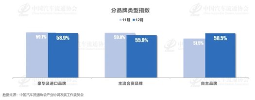 从销售结构看,12月主流合资品牌零售51万辆,同比下降27%,依旧下滑明显;豪华车零售29万辆,同比下降1%,也结束了连续增长态势;自主品牌零售146万辆,同比下降11%,但市场份额仍提升至64.3%。