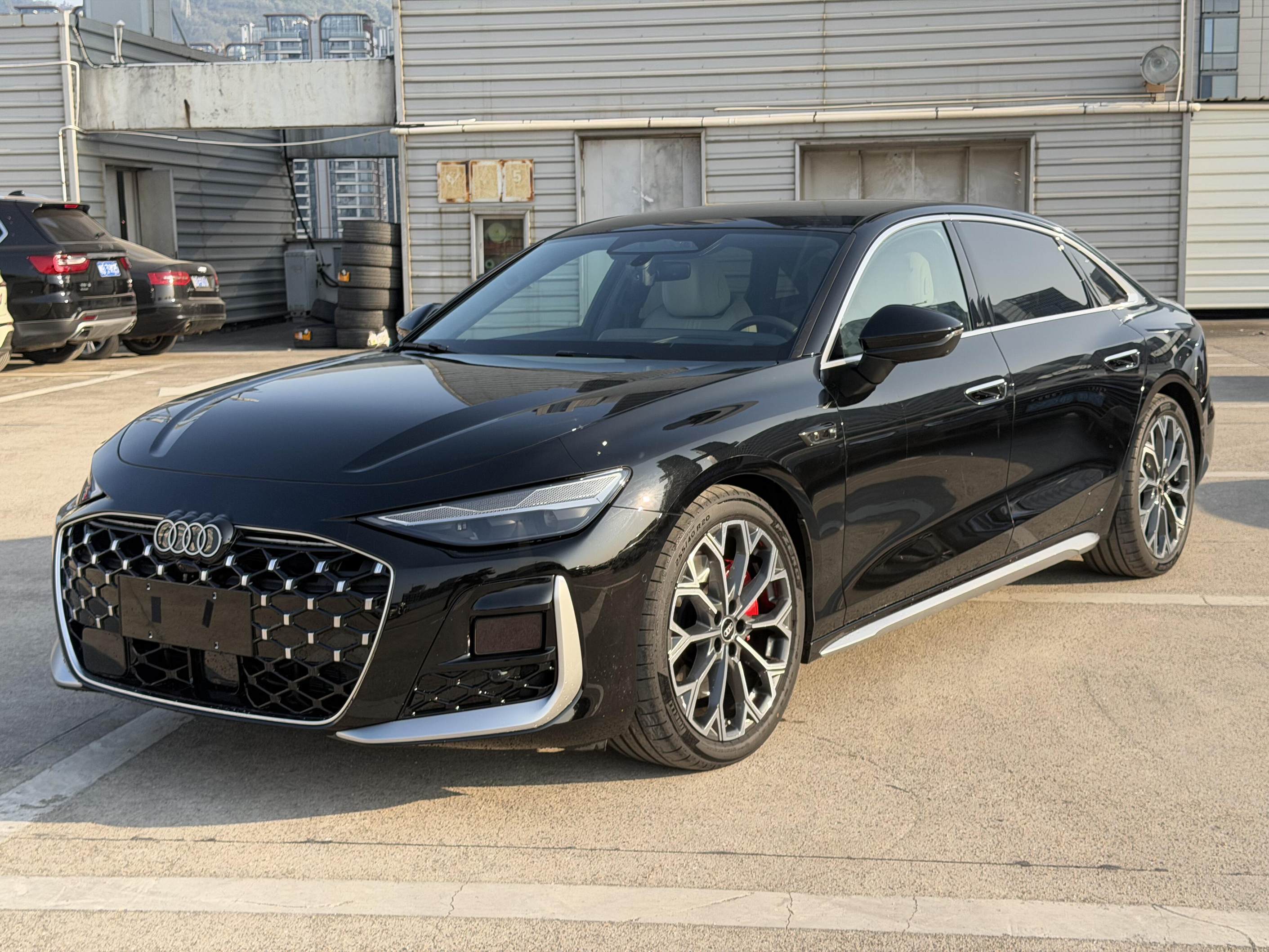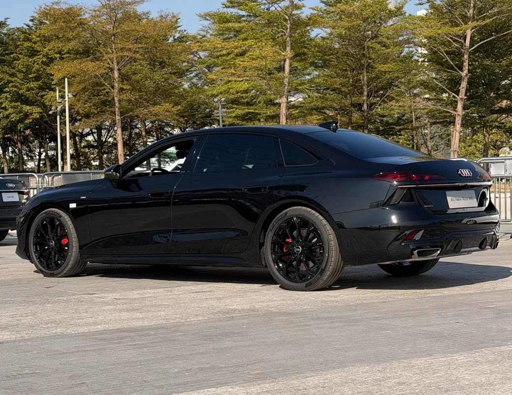 车身尺寸长宽高分别达到5142/1887/1464mm,轴距3066mm,相比现款奥迪A6L全面升级,也要大过奔驰E级。车身侧面继续采用修长的溜背式造型,并加入饱满的线条来刻画厚重感,而细节处的镀铬饰条点缀,继续强调尊贵气息。此外还换装了半隐藏式门把手、全新21英寸轮毂+红色卡钳以及双层贯穿式尾灯等时尚元素。黑光包则继续针对车身细节进行黑化处理,来营造运动气息。