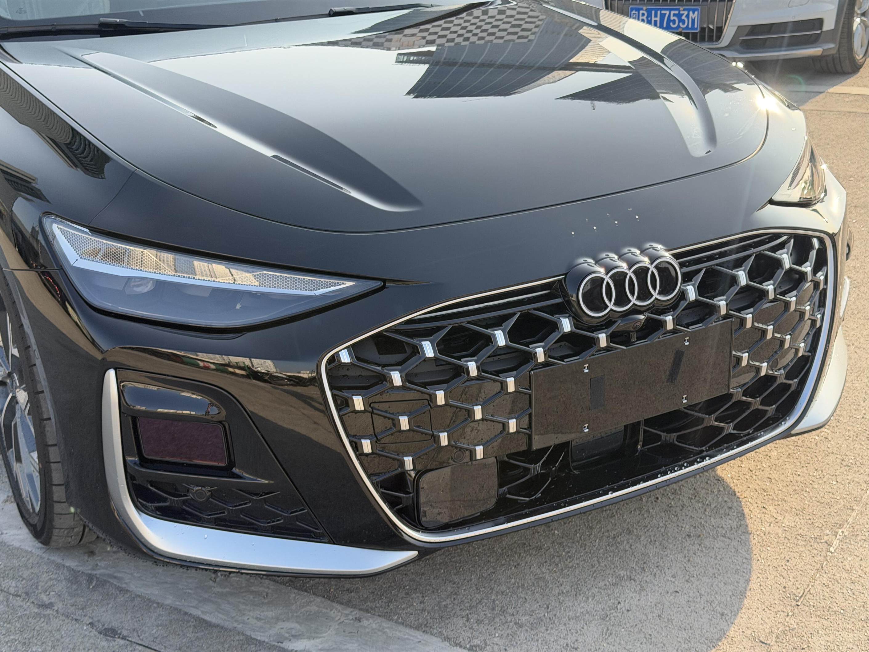 从实车图来看,全新一代奥迪A6L将采用家族最新的大尺寸八边形进气格栅,内部辅以熏黑网状元素+“满天星”镀铬点阵元素,加之獠牙式的“L”形导风槽,兼顾豪华感与视觉冲击力。而全新的星辰矩阵式LED大灯也十分犀利,可支持个性化灯光签名效果,加之发光四环logo,又营造出科技气息。另外新车同样提供黑光包,进气格栅内换装了“L”形熏黑元素,两侧配备熏黑运动导风槽。
