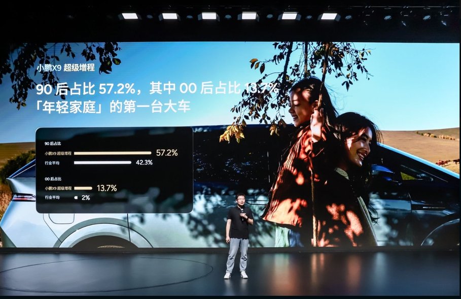 当传统MPV还深陷“商务稳重”的固有标签时,一场由年轻家庭主导的消费革命已悄然降临。1月19日,小鹏汽车X9超级增程用户画像分享交流会,用一组数据打破了行业认知:90后用户占比近六成,00后占比超一成,用户平均年龄较行业年轻10岁,近八成个人用户交付占比领跑同级。