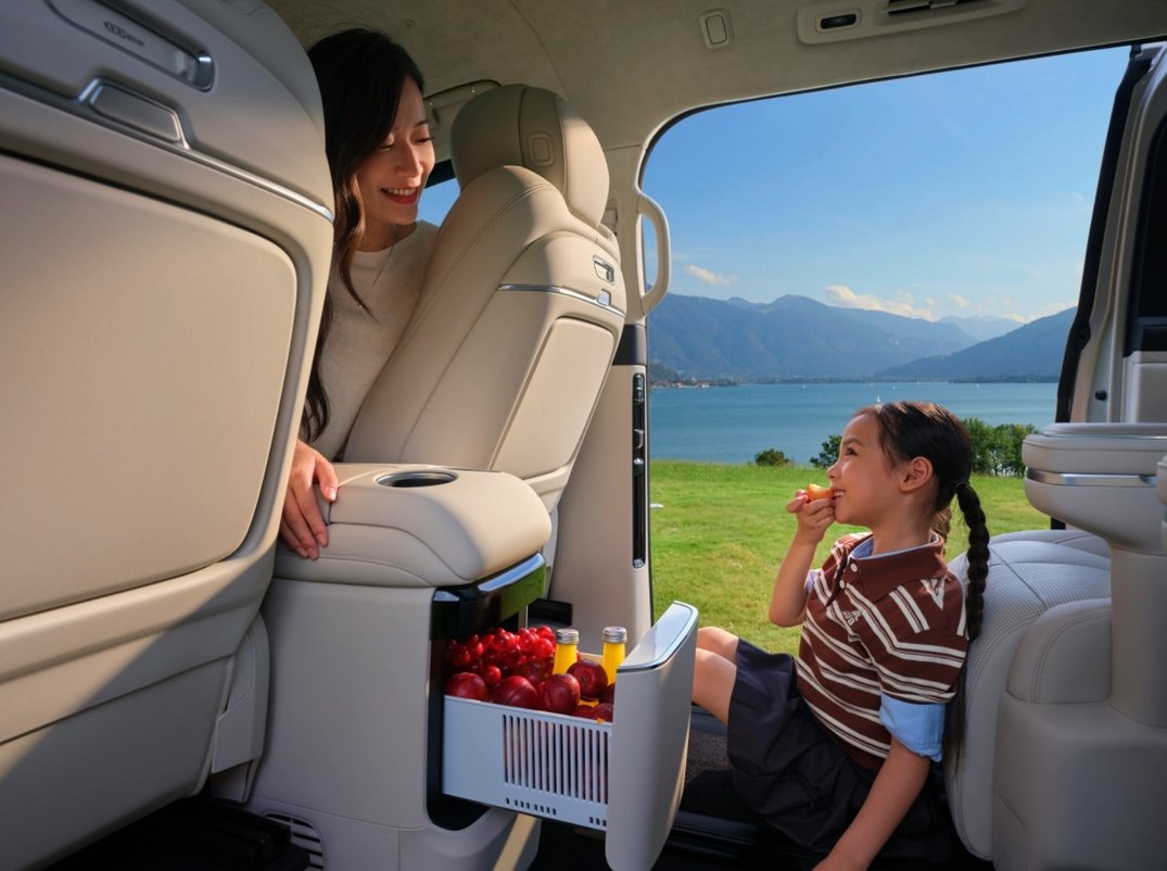 新车配备11层云感SPA Nappa真皮座椅,一二排通风、加热、按摩功能齐全,三排亦标配通风、加热及电动靠背调节;27扬声器Flyme Sound无界之声系统搭配后排娱乐巨幕,构建沉浸式移动影音厅;-6℃~50℃超宽温域冷暖箱可兼顾冷热需求;双层夹胶静音玻璃、主动降噪技术与全环保座舱材质,配合智能新风系统和负氧离子发生器,打造图书馆级静谧健康空间。