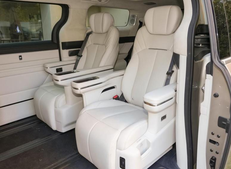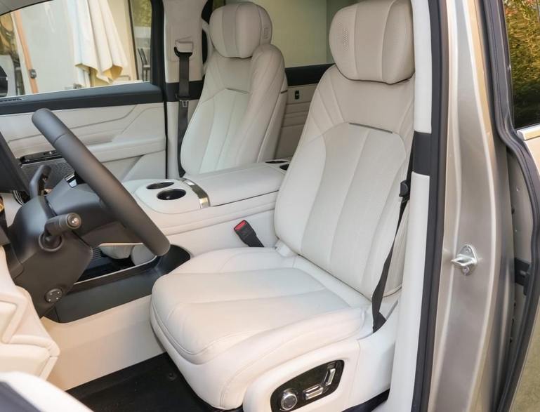 中排提供两个独立航空座椅,两侧有固定扶手,并集成了控制屏。不仅有电动腿托,还有腰撑调节,通风加热与按摩也不在话下。座椅的纵向调节距离达到1米,加上座舱内高度充足,儿童可以自由上下车并且在车内站立行走,中央过道距离也达到200mm,到后排也很方便。中高配车型提供-6-50℃超宽温域冷暖箱,各种季节都可舒适享用饮品。提供双层夹胶静音玻璃、主动降噪和静音轮胎,带来舒适静谧的内部空间。还有智能新风系统和负氧离子发生器,保证座舱空气清新怡人。