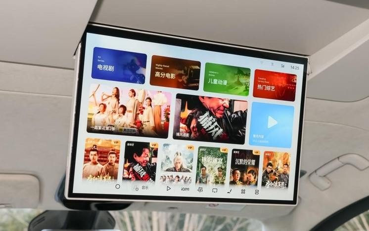 中排提供17.3英寸吸顶屏,支持触控操作、角度可调和手机平板投屏。
