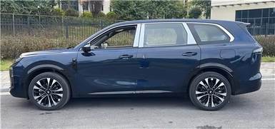 车身侧面,新车采用经典SUV造型,翼子板处集成摄像头模组,门把手则沿用传统样式,兼顾实用性与设计感。尺寸方面,新车长宽高分别为5235mm×1999mm×1800mm,轴距达3105mm,车身规格可与理想L9、问界M9等大型SUV比肩。