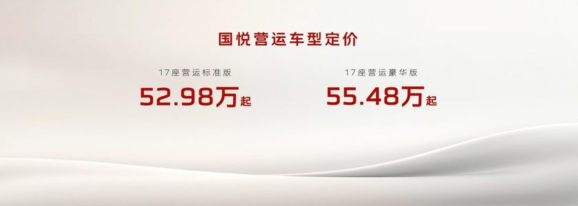 立足红旗金葵花国悦车型的成功基础与对营运市场的深度洞察,红旗倾力打造的红旗金葵花国悦营运版,是红旗对高端商务接待、旅游租赁、政企通勤等场景专业化、品质化升级需求的精准回应。新车提供17座营运标准版和17座营运豪华版两款车型,官方指导价分别为52.98万起和55.48万起,以差异化配置和丰富的个性化选装,精准满足不同运营商对高效可靠、持久盈利的核心诉求,同时为乘客创造“安全、尊享、舒适”的出行体验。