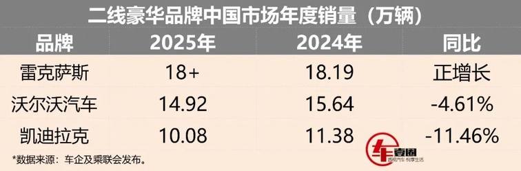 2025二线豪华品牌丨仅雷克萨斯微增,凯迪拉克何时迎拐点?