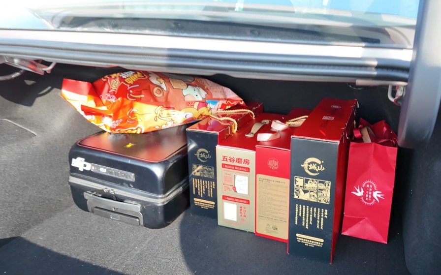 后备箱空间也是很让我惊喜的点。采购年货时还担心东风日产N6作为一台家用轿车,放了年货后就塞不下行李箱了。但没想到的是,放下所有年货的大盒子和一个行李箱后,还有不小的空余位置,目测再放两个登机箱也没问题。
