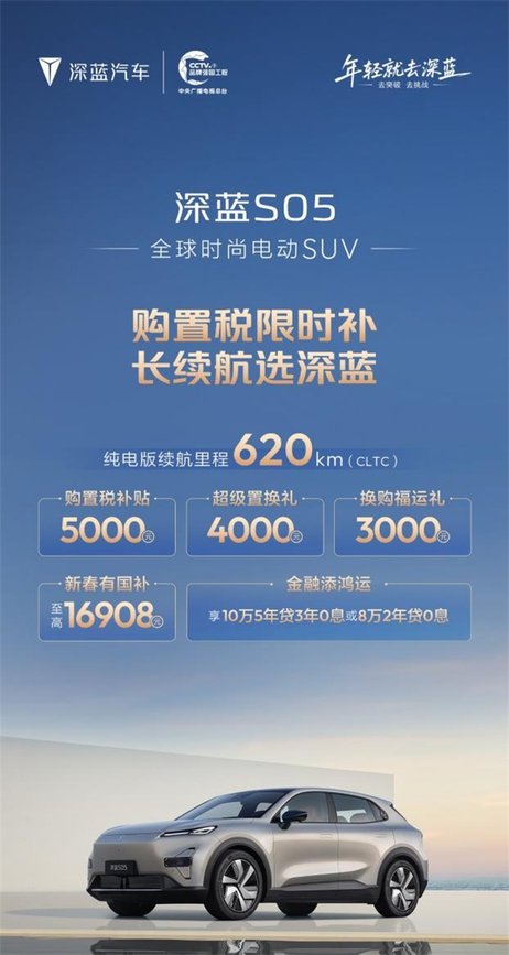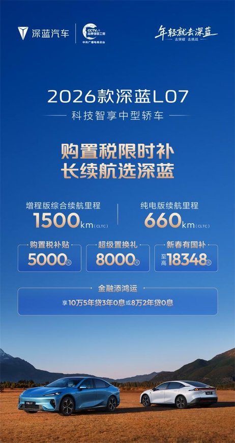马年行好运,新春购新车。春节前夕正值购车政策红利期,选择深蓝汽车,也就意味着将同时获得 “央企品质保障、长续航核心优势、全系限时补贴” 三重利好。2026,和深蓝一起,即刻焕新座驾,解锁新春出行新体验!