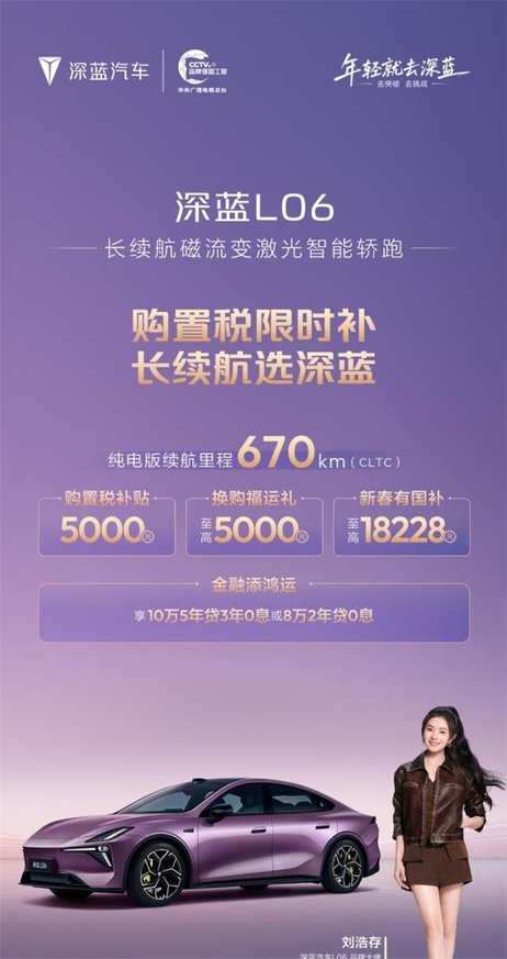 同时,深蓝L06以满满诚意推出多重购车福利,大幅降低智能座驾拥有门槛。消费者购车即享5000元购置税补贴、至高5000元换购福运礼、至高18228元新春国补,金融方案可享10万5年贷3年0息或8万2年贷0息。年轻消费者无需背负高额资金压力,就能轻松入手这款颜值与续航兼备的智能轿跑。