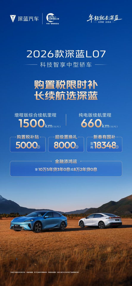 1月21日,深蓝汽车在直播间里搞了场干货颇多的对话,董事长邓承浩和《谭谈交通》的谭乔同框,没太多花架子,聊的就是大家最关心的辅助驾驶安全和未来技术。当然,重头戏还是随之公布的购车政策。深蓝这次不仅带来了S07、L06、S05、L07四款长续航车型,更匹配了一套诚意十足的组合优惠:购置税补贴、换购礼、国补红包直接给现金优惠,还有“至高5年0息”的金融方案。看得出,这不仅仅是一次促销,更像是针对春节出行需求的一次精准“助攻”。
