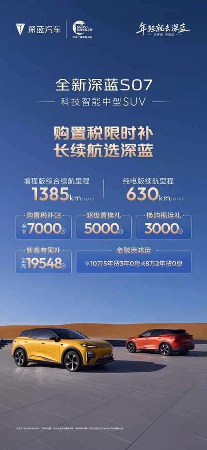 深蓝汽车作为中国长安旗下核心新能源品牌,肩负着新能源产业升级与技术突围的重要使命,是推动新能源产业高质量发展的关键力量。此次新春购车福利的推出,正是深蓝汽车践行央企使命、主动落实国家消费促进政策的切实体现。以实打实的优惠福利,回应了消费者的现实需求,尽显新央企、新深蓝的责任与担当。