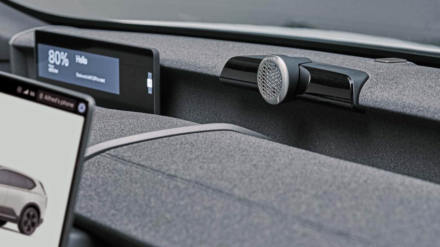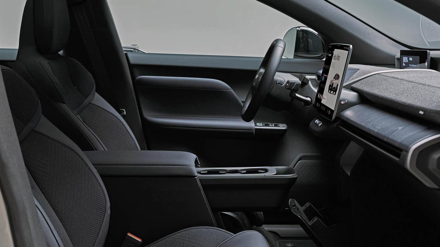 前排方面,沃尔沃不同于EX90,在中控大触屏之外,还为驾驶员在方向盘前方提供了一块更小的11.4英寸显示屏,用于显示重要驾驶信息,例如车速。它位于挡风玻璃与仪表台之间的边缘位置。这应当确保驾驶员看屏幕时视线尽可能少地偏离道路。因此瑞典人没有提供HUD抬头显示——是否合理,仍需实践检验。