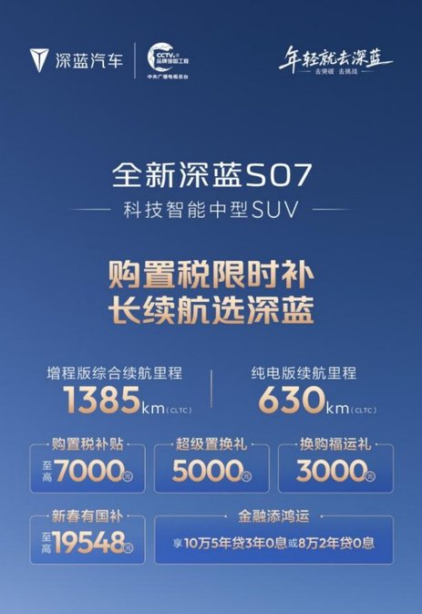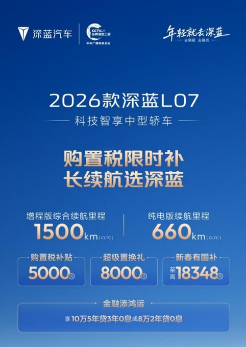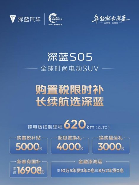 深蓝汽车背靠中国长安,有着央企的扎实根基。这次推出实实在在的优惠,既是响应国家促消费政策,也是真心回馈用户。春节前正是政策红利期,选深蓝,等于是把央企品质、长续航实力和限时补贴一起开回家。2026年,不如就开辆深蓝,迎接一个更舒适、更智能的新春旅程吧。