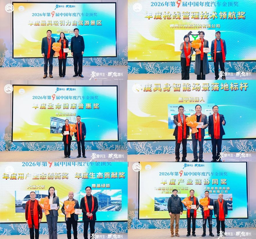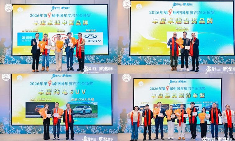 本次活动还颁发了第9届中国年度汽车金顶奖,在延续表彰“年度卓越中国品牌”(比亚迪、吉利、奇瑞)、“年度卓越合资品牌”(东风本田)及各类年度标杆车型的同时,重磅新增 “年度生态贡献奖”、“年度用户生态创新奖”、“年度产业链协同奖”等生态导向奖项,旨在褒奖那些积极构建或融入健康产业生态、创造增量价值的先行者。