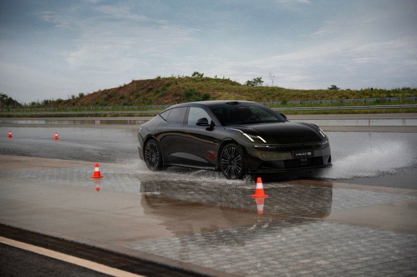 领克10 EM-P eAWD智电四驱和后驱车型之间的差异,从起步阶段就能看出来。后驱车型在结冰路面上,一脚电门下去后轮可能空转,车尾也会有一定摆动。而领克10 EM-P因为拥有前后轴50:50的扭矩分配,能够把动力平稳传递到四个车轮,车身像吸附在地面上一样稳稳驶出,所以不会打滑。
