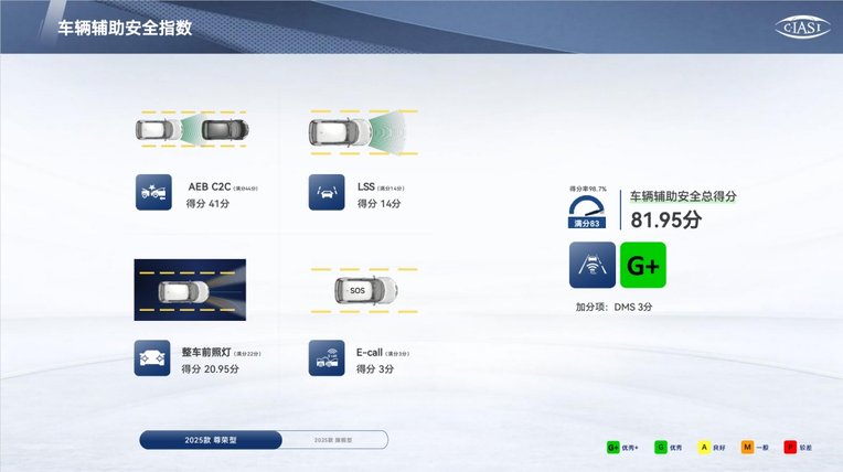 在耐撞性与维修经济性分指数测评中,其结构耐撞性获得了优秀+评价。此外,还凭借低速主动安全方面的出色表现获得了额外加分。这意味着在日常生活中,万一不幸发生碰撞,车辆车身更为坚固,维修成本更低,同时还能减轻对其他车辆的伤害,全方位保障用户的安全与财产。