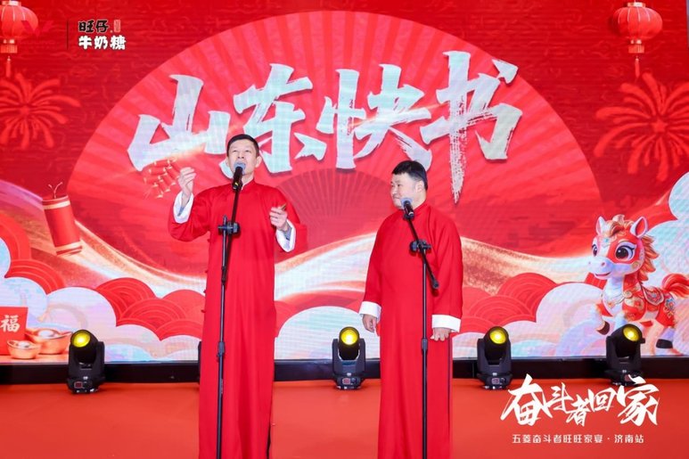 除了荣誉时刻,现场还准备了极具山东特色的文艺演出。经典的山东快书表演引得满堂喝彩,欢快的歌舞节目将氛围推向高潮。五菱汽车与旺仔牛奶糖还为大家准备了丰盛的团圆家宴、惊喜抽奖与互动游戏,让奋斗者们在欢声笑语中卸下一年的疲惫,感受“五菱大家庭”的温暖。