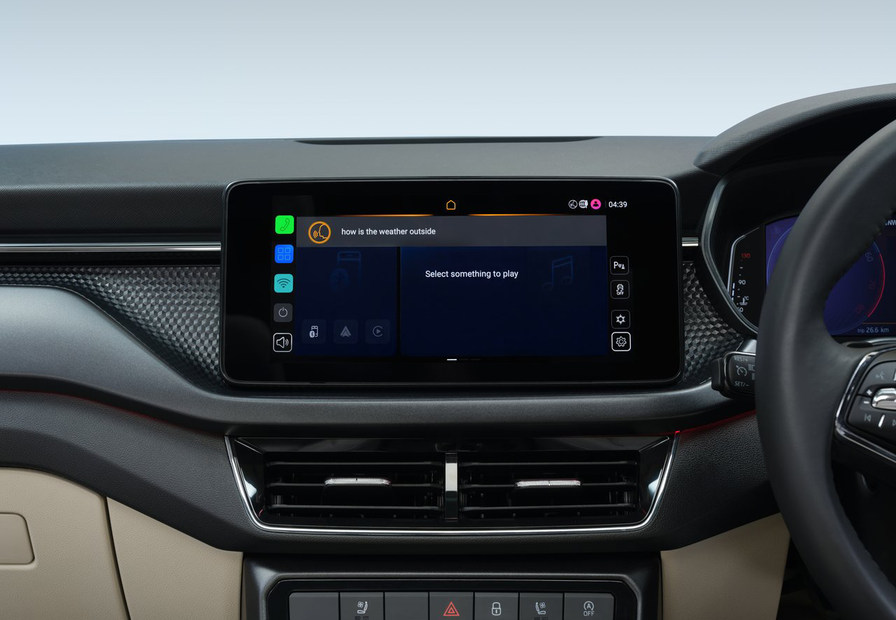 针对印度用户需求还提供了全景天窗、前排电调座椅通风、无线充电面板、自动雨刮、泊车雷达和定速巡航,并且装备带谷歌语音助手的10.1英寸中控屏,能识别印度风味的英文口音,同时也支持安卓、苹果手机的无线互联。