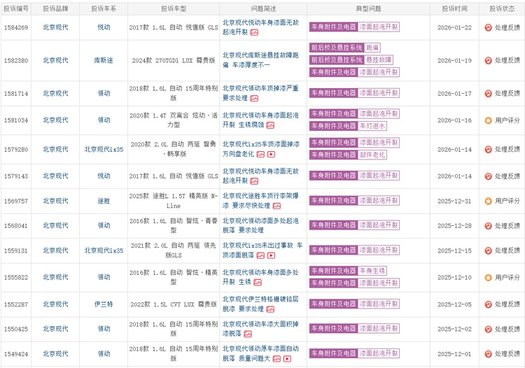 行业数据显示,2025年前8个月,北京现代车型的典型投诉集中在漆面起泡开裂、车身生锈、仪表台开裂等制造工艺问题上。这些看似微小却频繁出现的问题,逐渐侵蚀了品牌长期建立的质量口碑。
