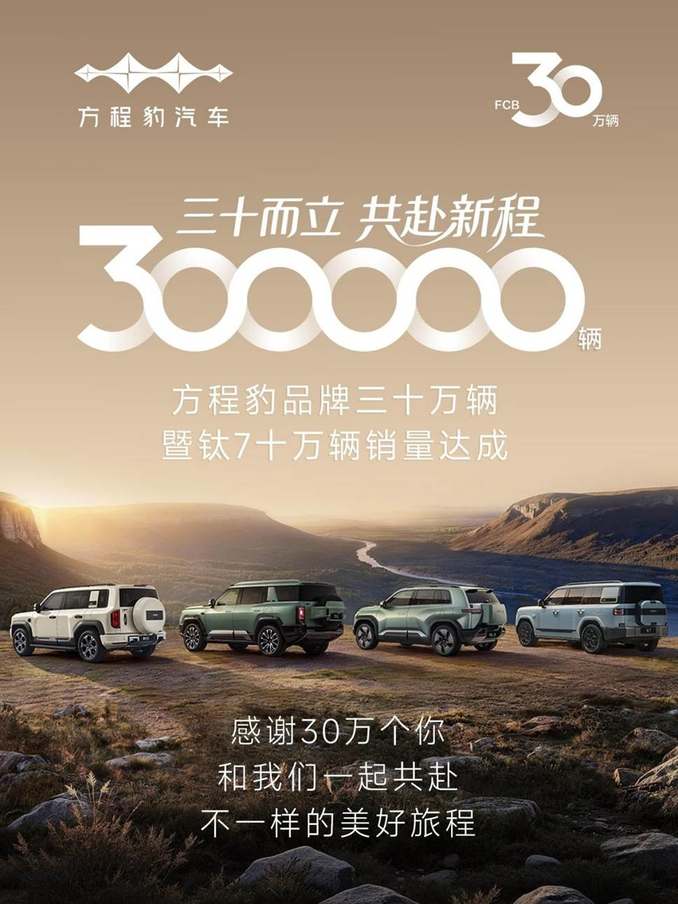 1月15日,方程豹汽车宣布品牌累计销量突破30万辆,不仅成为最快达成30万辆的新势力品牌TOP2、更是20-30万辆新势力品牌增速TOP1。