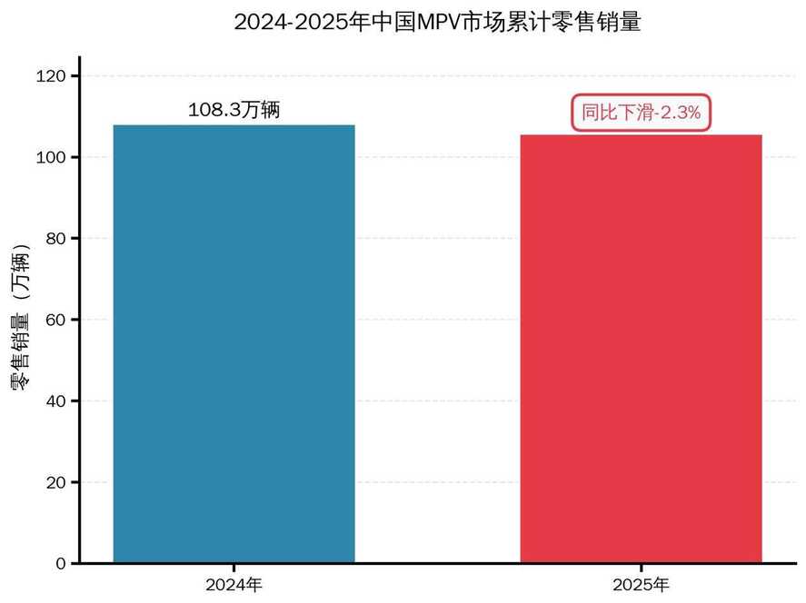 2025年中国MPV市场的强烈反差,值得行业深思:乘联会数据显示,全年MPV累计零售105.8万辆,同比下滑2.3%,四季度跌幅更扩大至16.1%,传统商务MPV份额持续缩水,赛道深陷“小众化、固有化”的结构性困局。