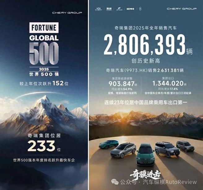 首先,星途2025年的“超越”绝非偶然,而是建立在奇瑞集团深厚技术积淀与自身精准战略布局之上。这一年,奇瑞集团在急流勇进中,傲然挺进世界一流车企阵营,成功登陆港交所开启资本全球化新篇章,《财富》世界500强排名跃升至第233位,以280.6万辆的年销量、7.8%的同比增幅及23年蝉联中国车企出口第一的战绩,为星途提供了最强劲的后盾支撑。