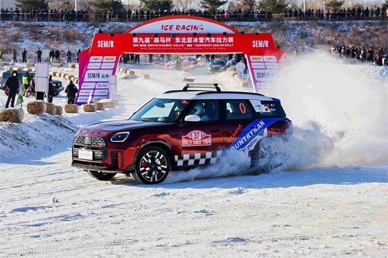 肩负安全护航使命的MINI JCW三门版(编号“00号”)与MINI JCW COUNTRYMAN(编号“0号”),分别承担赛前赛段封锁预勘与全程赛道确认任务。依托短轴距宽轮距的经典布局、轻量化车身以及低至60毫秒极速响应的DIVC集成控制系统,MINI在极寒环境下实现精准姿态控制;其ARB加速限滑稳定系统与DSCi系统的协同加持,既保障冰雪路面的制动安全,更以“半抓半滑”的灵动操控呼应赛事竞技需求。这份冰原掌控力,源自MINI半个多世纪的拉力基因,也与延边州持续八年培育冰雪赛事品牌的坚守相得益彰。