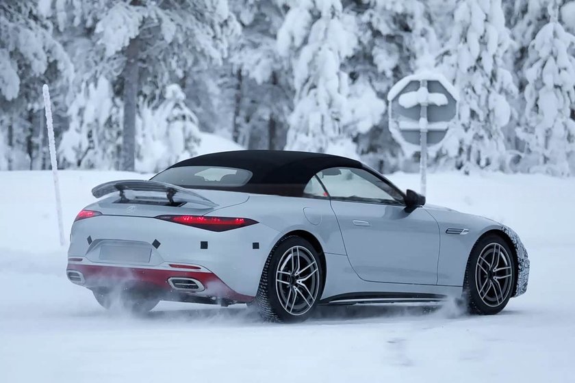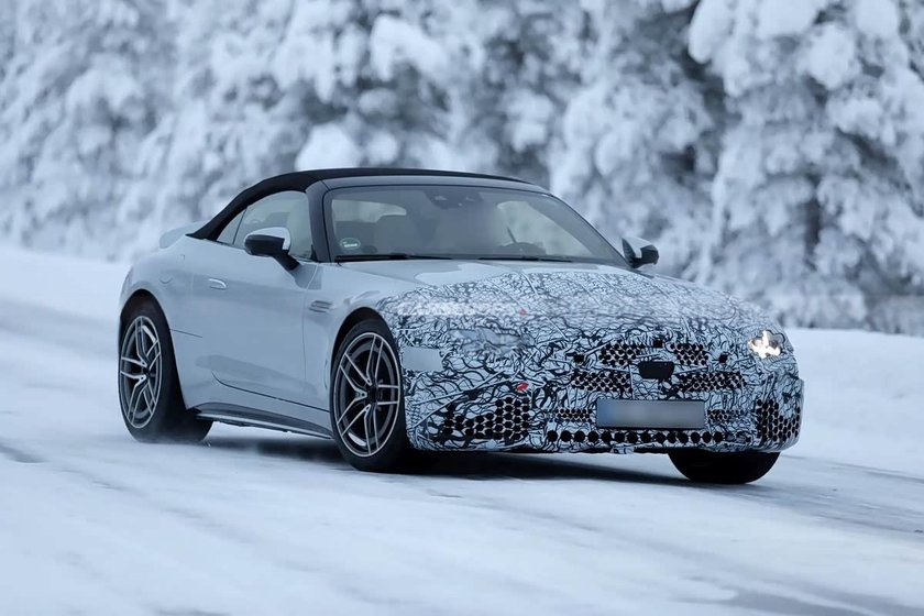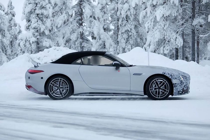 近日,我们从相关渠道获取到了一组新款奔驰AMG SL车型的谍照。需要注意的是,现款车型于2021年秋季发布,这次是中期改款车型,所以整体变动不大,外观层面主要集中在车头。至于新车如何,我们接着看下去。