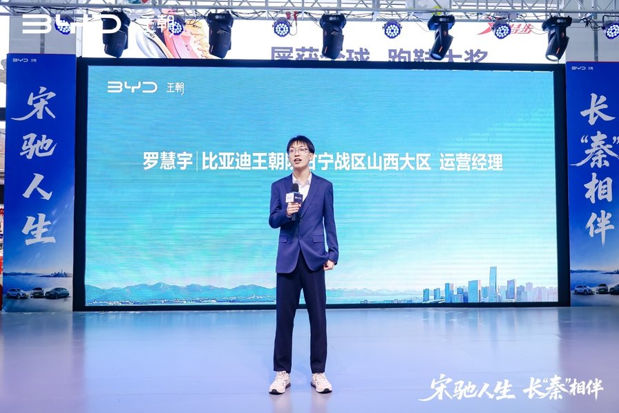 发布会上,比亚迪汽车王朝陕甘宁战区山西大区运营经理罗慧宇先生首先致辞,分享了比亚迪的品牌理念与市场展望,彰显了品牌持续引领新能源变革的决心。随后,在全场倒计时中,三款新车揭开神秘面纱,以流光溢彩的外观设计赢得满堂喝彩。