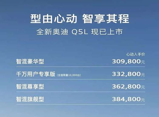 这一市场反应或许让一汽奥迪尝到了甜头,也将这一策略扩展到了更多的车型。今年年初,新款奥迪Q5L发布,起售价直接定为30.98万元,相比老款车型价格下调了近4万元,这一价格比同级别的宝马X3和奔驰GLC都要低,形成了明显的价格优势。
