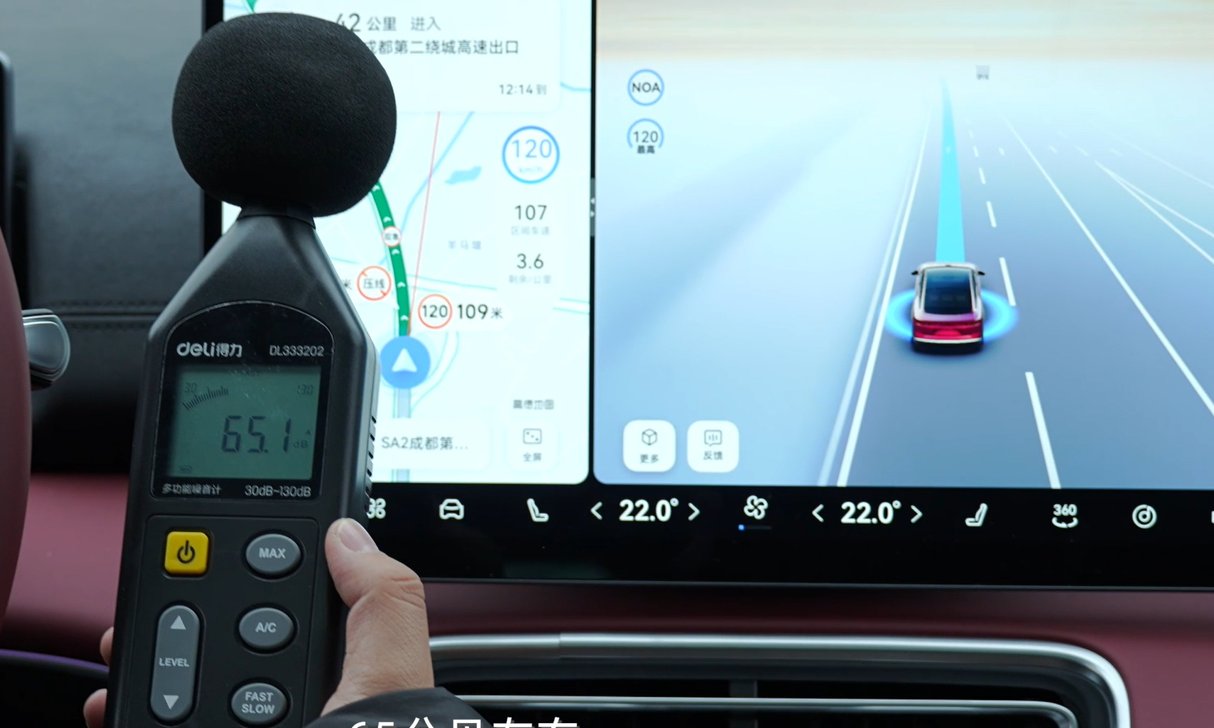 NVH方面,这辆风云A9L光辉四驱巅峰版实测的数据为:120km/h时,车内分贝值约为65分贝;车速降至100km/h时,分贝值为62.5-63分贝区间。从这组数据来看,高速行驶状态下,风云A9L光辉四驱巅峰版车内静谧性在同价位车型中表现处于中等偏上水平。