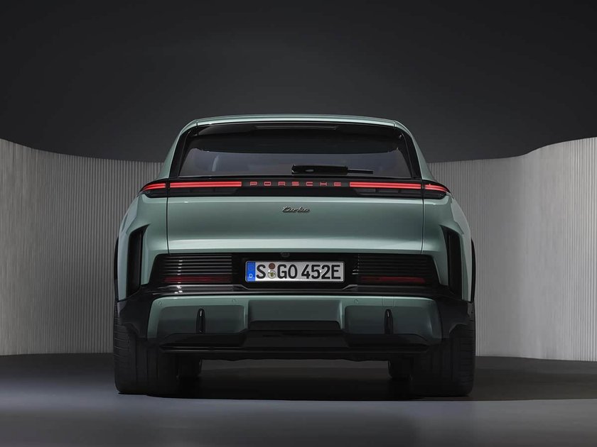 相比于车头和车侧,新车的尾部改变就很大了,如果遮住LOGO的话很难看出这是一台保时捷,颇有点新势力的感觉。具体来看,新车配备了小尺寸车顶扰流板和内嵌高位刹车灯,后雨刷则为外露式设计。尾灯组依旧是贯穿式设计,中间是可发光的PORSCHE标识,辨识度非常高。后包围也很夸张,两侧拥有两个半隐藏式的可伸缩导流板,可以在相应的时速下减小车身阻力,先不论效果如何,观感上就非常出众。