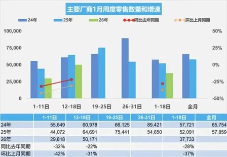 虽然1月份还没过完,但这股“寒气”早已从销量周报中渗出。乘联会数据显示,今年1月1-18日,全国乘用车零售不仅同比下降了28%,环比上月同期更是下滑了37%。
