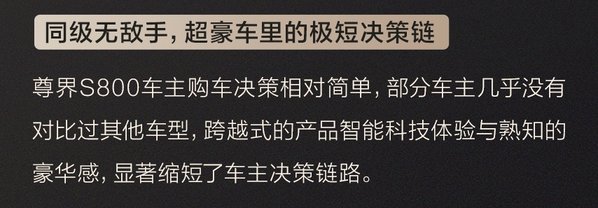 车主古先生表示,“买尊界S800时,我几乎没有对比其他车,直接下单了。因为它不仅能体验到更高端的产品,还能感受到更先进的科技。”