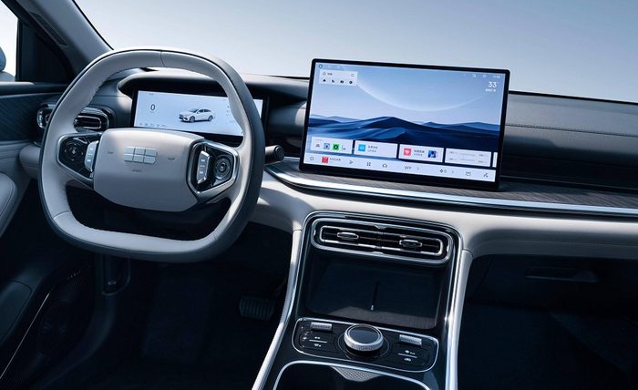 拥有4806mm车长,轴距达到2756mm的银河星耀6,座椅布局为五座,车内采用大面积软质材料加以覆盖,并运用拉丝面板加以衬托。平底式多功能方向盘,包裹性不错的座椅,以及简洁的中控台等,既透着质感也注重实用性。融合了很多功能的中控大屏处于醒目位置。