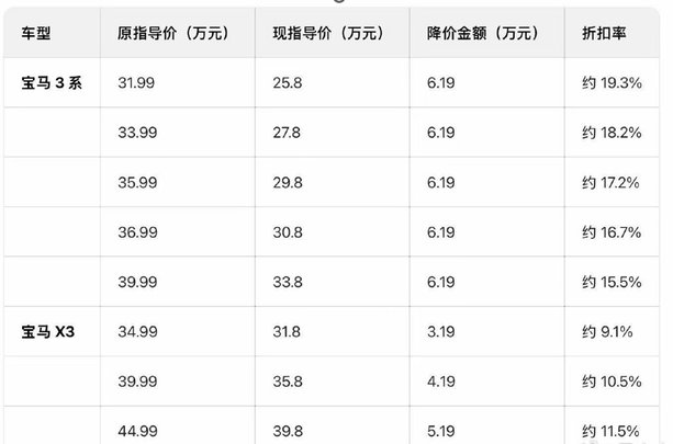 具体来看,宝马3系长轴版与标准轴距版起售价分别降至27.8万元与25.8万元,所有版型的现指导价相较于原指导价统降6万多元。