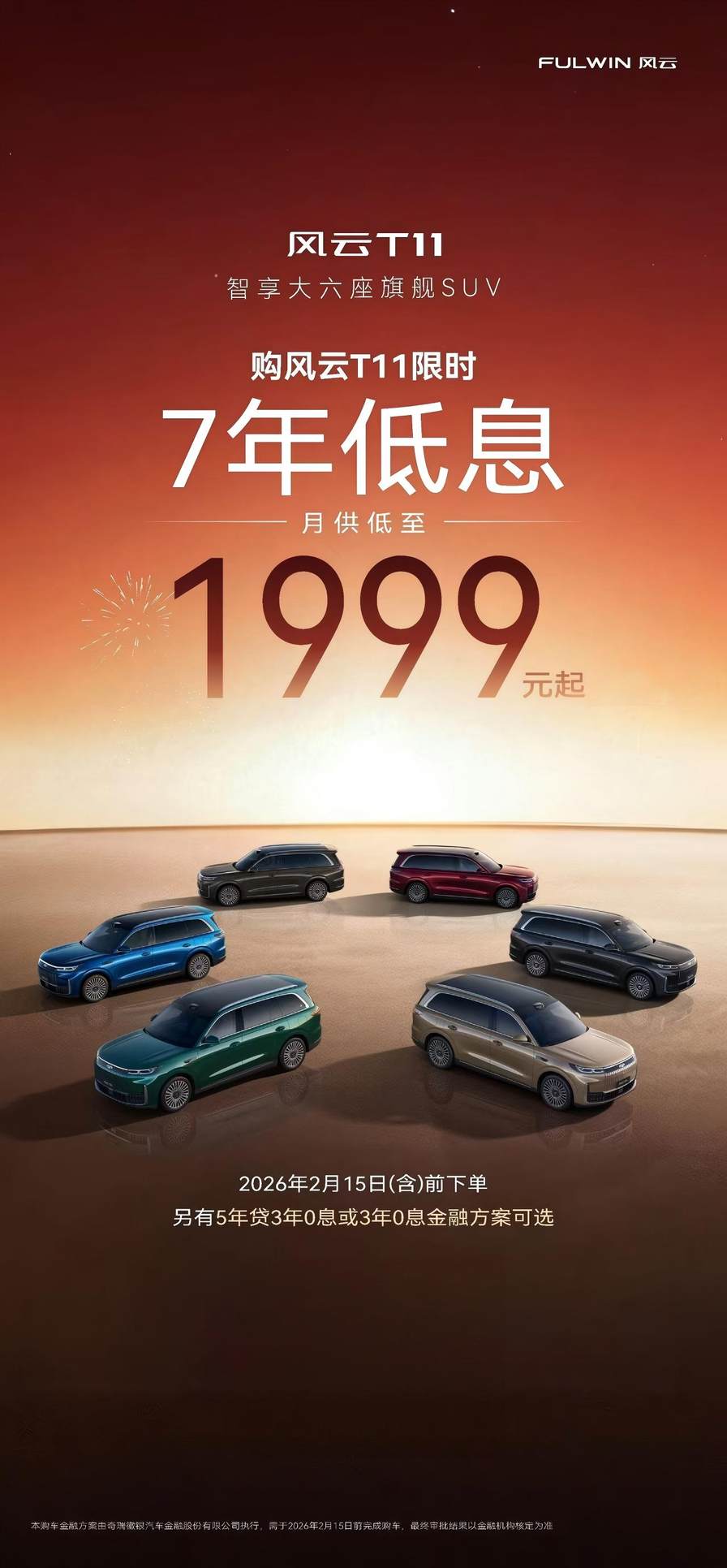 新春换大六座SUV 风云T11推出7年低息购车方案