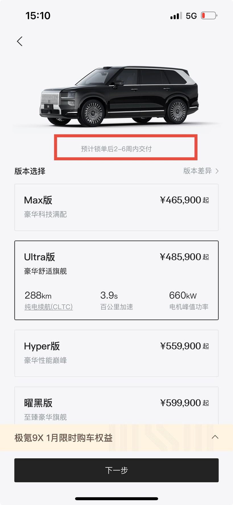 订单火爆产能提速,极氪9X Max、Ultra版交付期大幅缩减