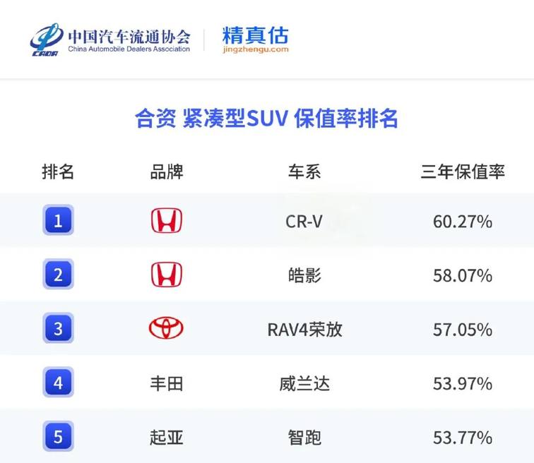 近期,中国汽车流通协会发布了《2025年度中国汽车保值率报告》,在这份权威榜单中,东风本田CR-V以高达60.27%的三年保值率,荣获合资品牌紧凑型SUV保值率冠军。