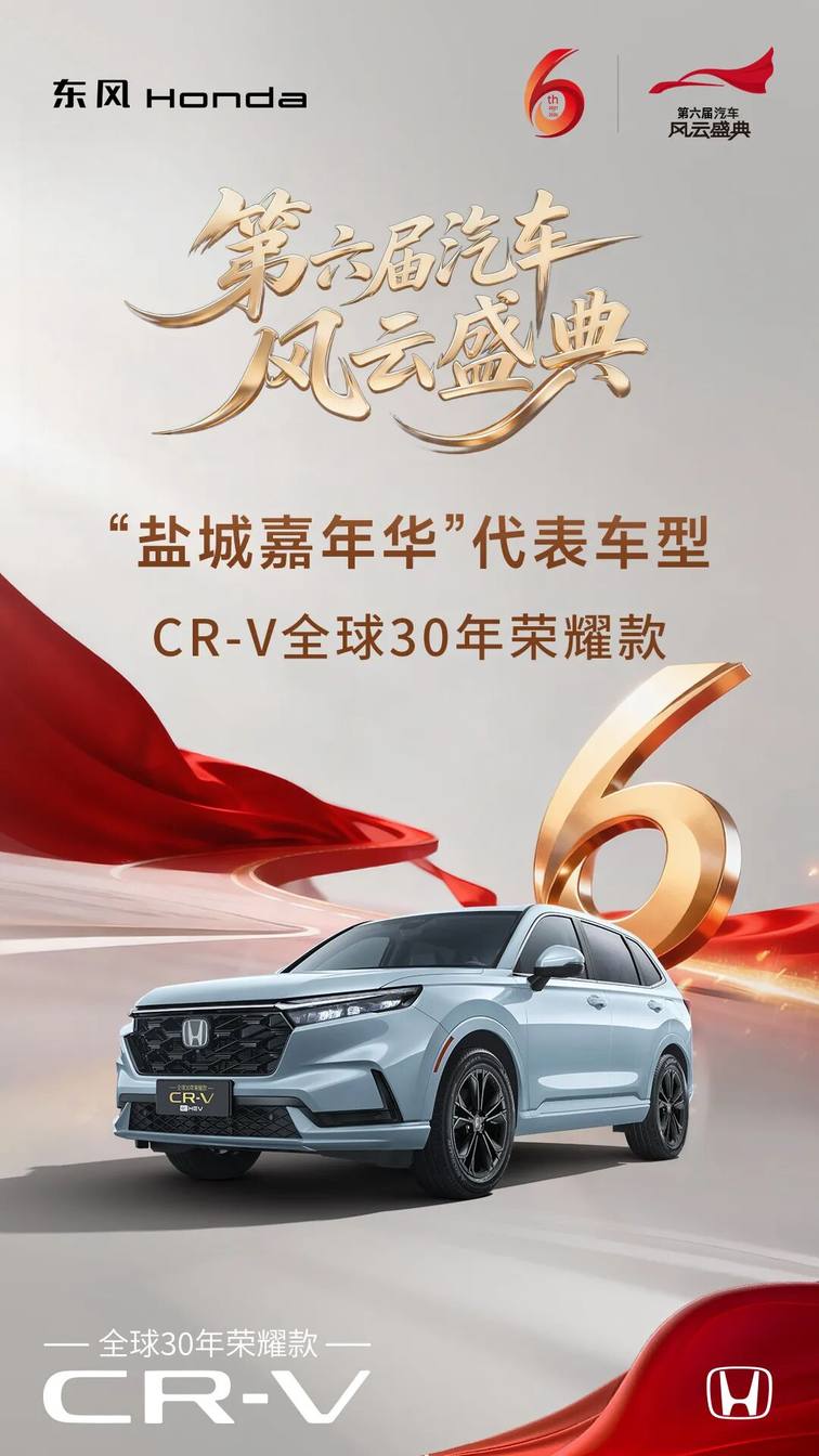 基于保值、品质、混动、安全等多方面的全面领先, CR-V不仅赢得了市场的认可,也获得了国家级权威机构的褒奖。不久前,央视在盐城举办第六届《汽车风云盛典》,东风本田CR-V全球30年荣耀款凭借卓越的综合实力,当选盛典代表车型。央视的认可,进一步印证了CR-V在品质、安全、混动、保值、底蕴这几方面的标杆实力。