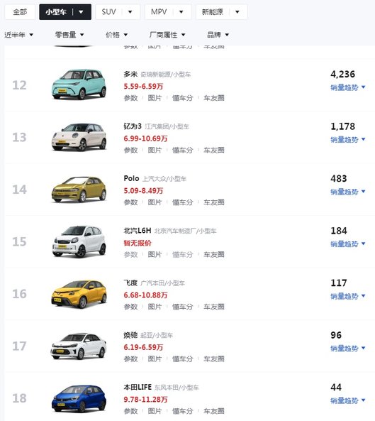 如今的A0级和A00级,完全是纯电的天下。上到海豚、星愿,下到宏光MINI EV、长安糯玉米,可以说是用户用脚投票,完成了电动化转型。
