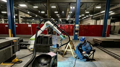 在焊接领域,“精焊师”移动式焊接机器人克服了传统焊接机器人“功能单一、集成调试复杂、轨迹精度差”的问题。该设备联网后可一键下载云端焊接工艺,无需焊接经验即可上手。全中文操作界面APP,操作人员只需简单选择工艺配方、点击按钮、拖拽对点即可完成“碳钢、不锈钢、铁、金属合金”焊接任务。