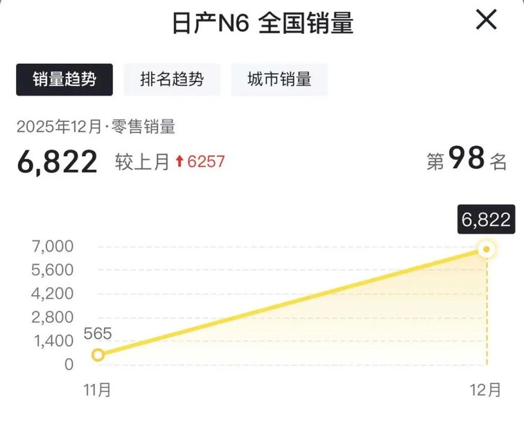 然后是新能源车型,东风日产的N7、N6等车型,全年合计销量突破5万台,其中大电池超舒适插混轿车N6,锁单量也破万了,这标志着日产在华的新能源转型,终于迈出了关键一步。